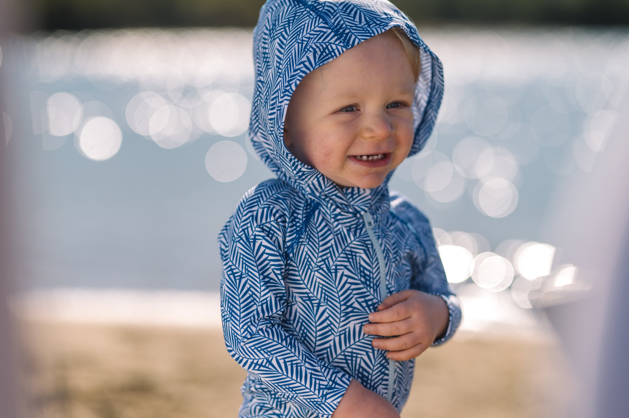 This was also right around the time when major sunscreen brands were recalling thousands of products for containing benzene, a cancer-causing chemical. At this point, I knew sunscreen alone wasn’t going to be our best defense against the sun. By the time Nelson was one year old, I could see the sunsuit in my head and had spent a year shopping for it but couldn’t find the product I was envisioning. Finally, I told my husband, “I can’t be the only mom with this problem, I’m going to design a sun protective swimwear line”. That’s when I started sketching and taking steps to bring the idea to life.