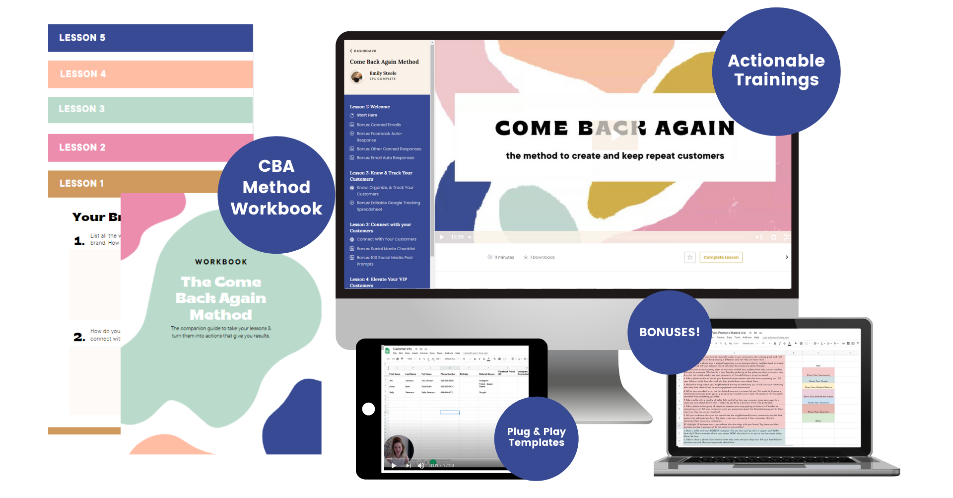 That’s exactly why I created the Come Back Again Method. We wanted to help you maintain a reliable customer base so you can get back to the reason you started your business in the first place.